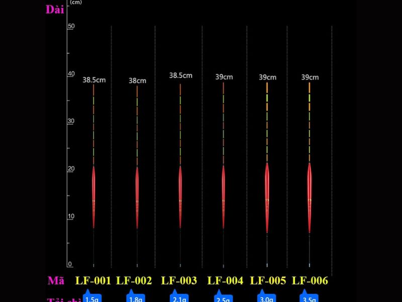Chiều dài là một trong những thông số phao câu đài quan trọng nhất. Phao càng dài thì càng phù hợp với nước sâu và cần dài, giúp dễ quan sát từ xa. Phao ngắn phù hợp với ao hồ nông và câu gần bờ, nơi độ nhạy được đặt lên hàng đầu.