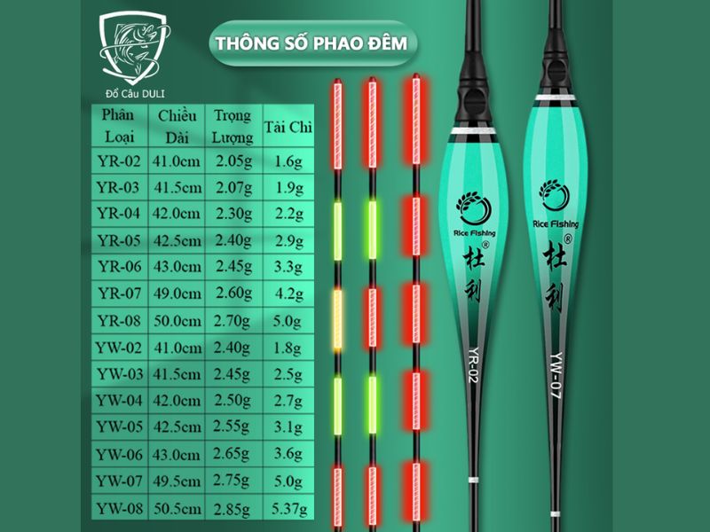 3. Thông số phao câu ban đêm