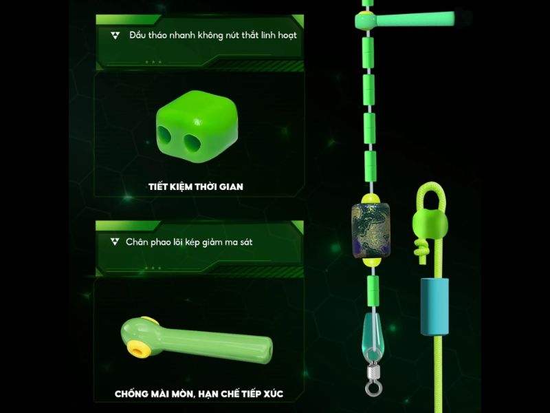 - Vòng cao su: Hỗ trợ giảm sốc khi cá táp mạnh, tăng độ bền cho dây.