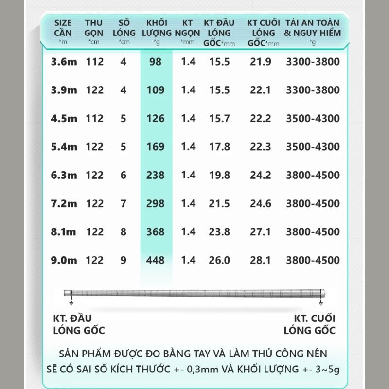 II. Kích thước cần câu đài V5 Big Fish CC-32