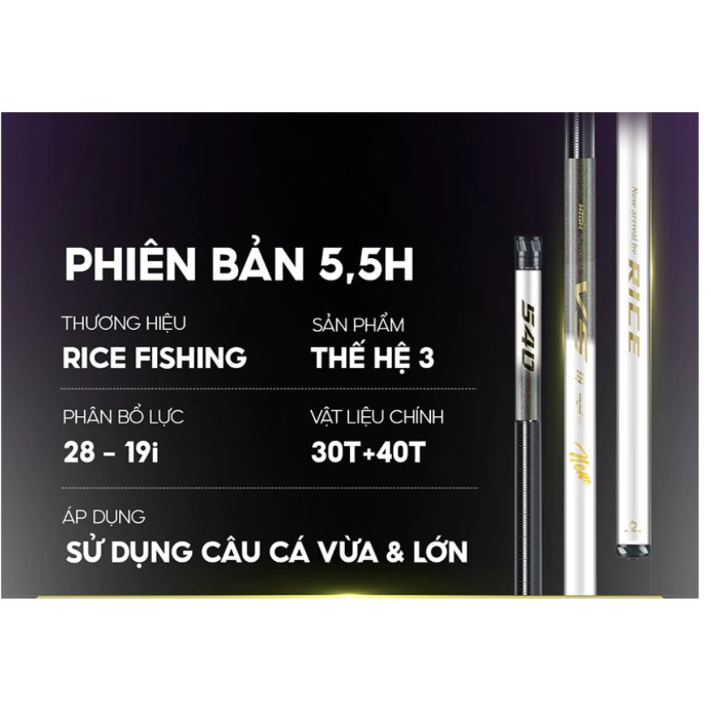 Cần câu V5 5,5H CC-41 thế hệ 3 là dòng sản phẩm mới đến từ thương hiệu Rice Fishing, nổi bật với khả năng chịu tải tốt, độ cứng 5,5H và độ ổn định cao. Đây là lựa chọn lý tưởng cho những ai thường xuyên câu các loài cá có kích thước lớn như rô, chép, trắm, tại hồ dịch vụ hoặc môi trường tự nhiên.