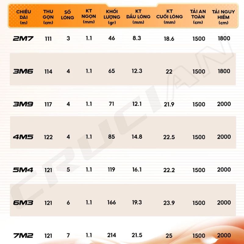 1. Cần V5 diếc CC-33 đa dạng kích thước