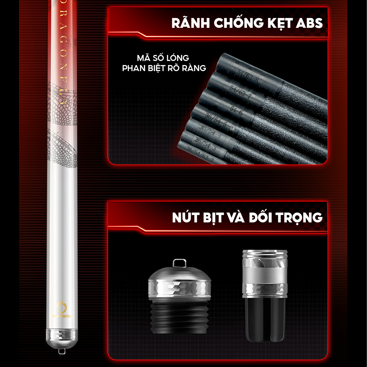 Với đối trọng cân bằng áp suất không khí độc quyền của Rice Fishing, thao tác ra cần và thu gọn trở nên cực kỳ mượt mà. Người dùng sẽ cảm nhận rõ sự khác biệt: không còn tình trạng kẹt lóng hay nặng đầu, thay vào đó là cảm giác trơn tru và đầm tay chuẩn xác đến từng động tác.