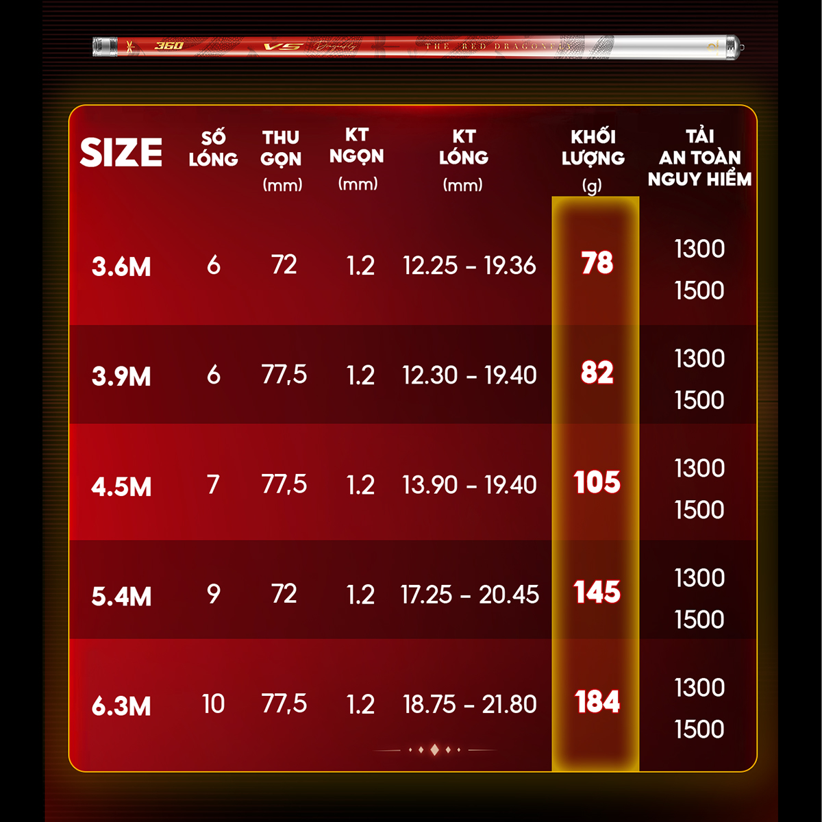 Dòng cần câu rút gọn CC-46 được Rice Fishing phát triển với nhiều kích thước khác nhau từ 3m6 đến 6m3, đáp ứng đa dạng nhu cầu của người chơi – từ câu ao, hồ, sông đến đầm tự nhiên. Mỗi phiên bản đều giữ nguyên triết lý thiết kế nhẹ, mạnh, chuẩn lực, giúp bạn dễ dàng chọn lựa cây cần phù hợp với phong cách câu của mình.