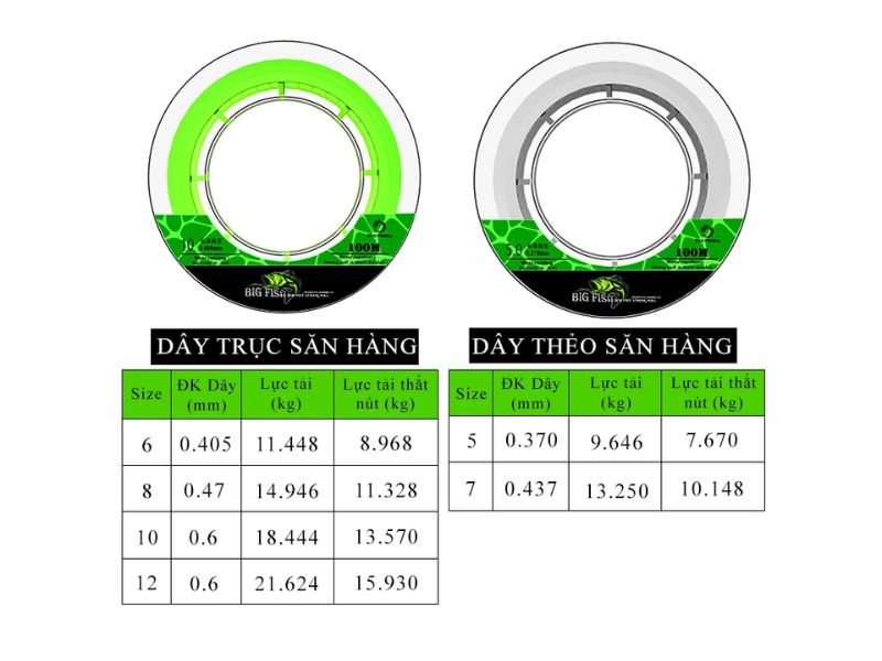 Độ lớn của cước săn hàng quyết định trực tiếp đến sức chịu tải. Với cá tầm trung, cước trục từ #3.0 là hợp lý; còn với cá to, có thể từ #5.0 tuỳ vào thói quen cũng như loại cá. Tuy nhiên, không nên chọn dây quá dày vì dễ bị cá phát hiện, giảm tính tự nhiên của mồi. Lời khuyên là nên chọn dây đủ mạnh mà vẫn mềm mại, cân đối giữa sức bền và độ nhạy.