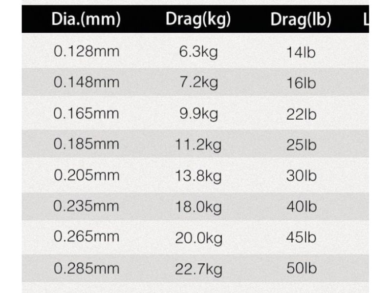 III. Các thông số về dây câu cá PE
