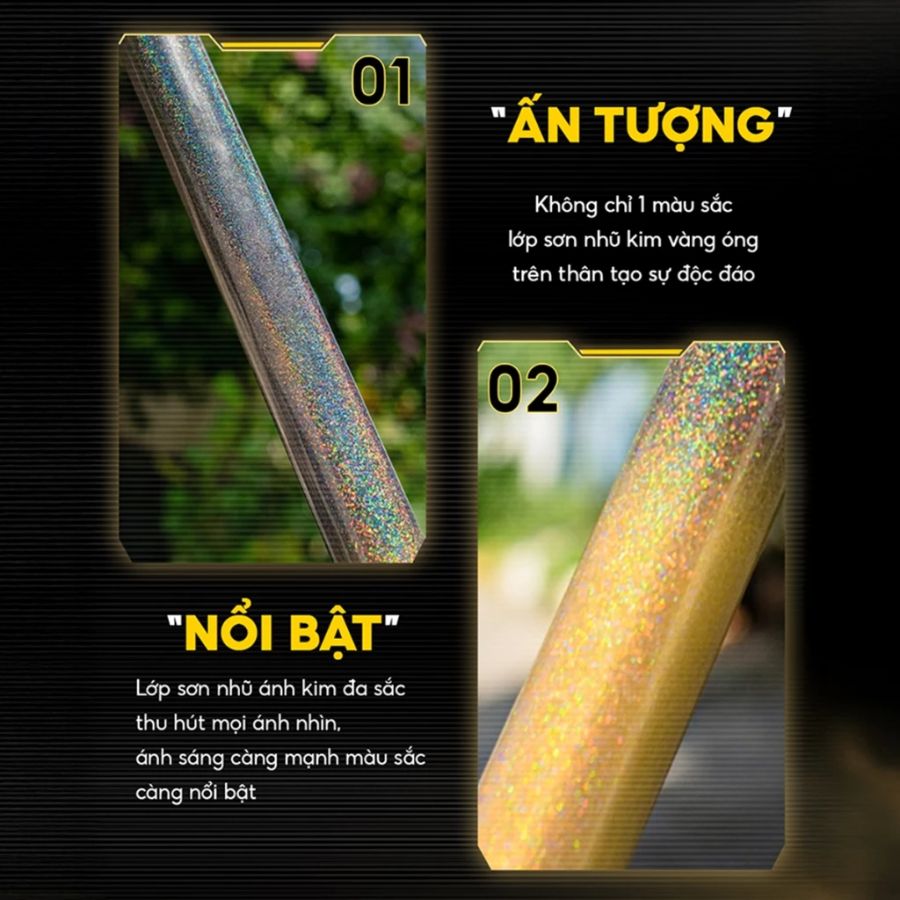 Điểm nhấn đầu tiên khiến gác cần Rice Fishing KK-66 trở nên khác biệt chính là lớp sơn nhũ ánh kim đa sắc. Bề mặt lấp lánh dưới ánh sáng tự nhiên mang lại hiệu ứng bắt mắt, tạo cảm giác sang trọng và cuốn hút. Không chỉ dừng lại ở yếu tố thẩm mỹ, gam màu này còn giúp người dùng dễ dàng nhận diện sản phẩm giữa nhiều dụng cụ khác, đặc biệt trong những chuyến đi câu dài ngày. Đây chính là sự kết hợp hài hòa giữa tính nghệ thuật và tính tiện dụng mà ít sản phẩm trên thị trường đạt được.