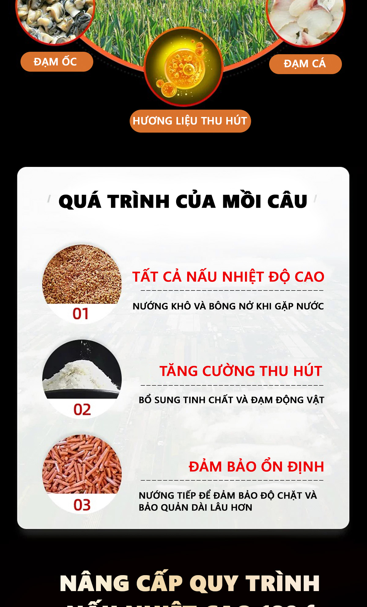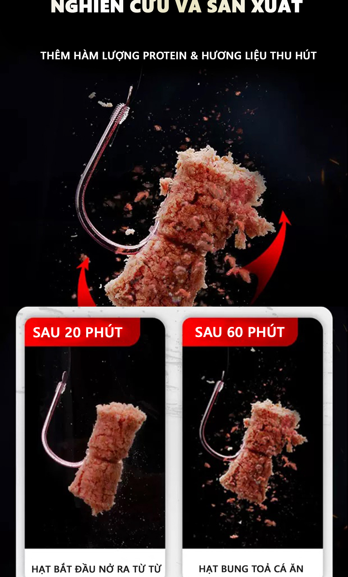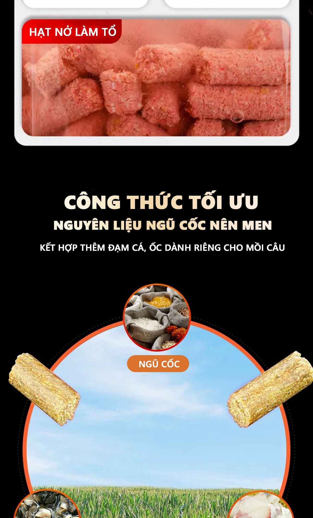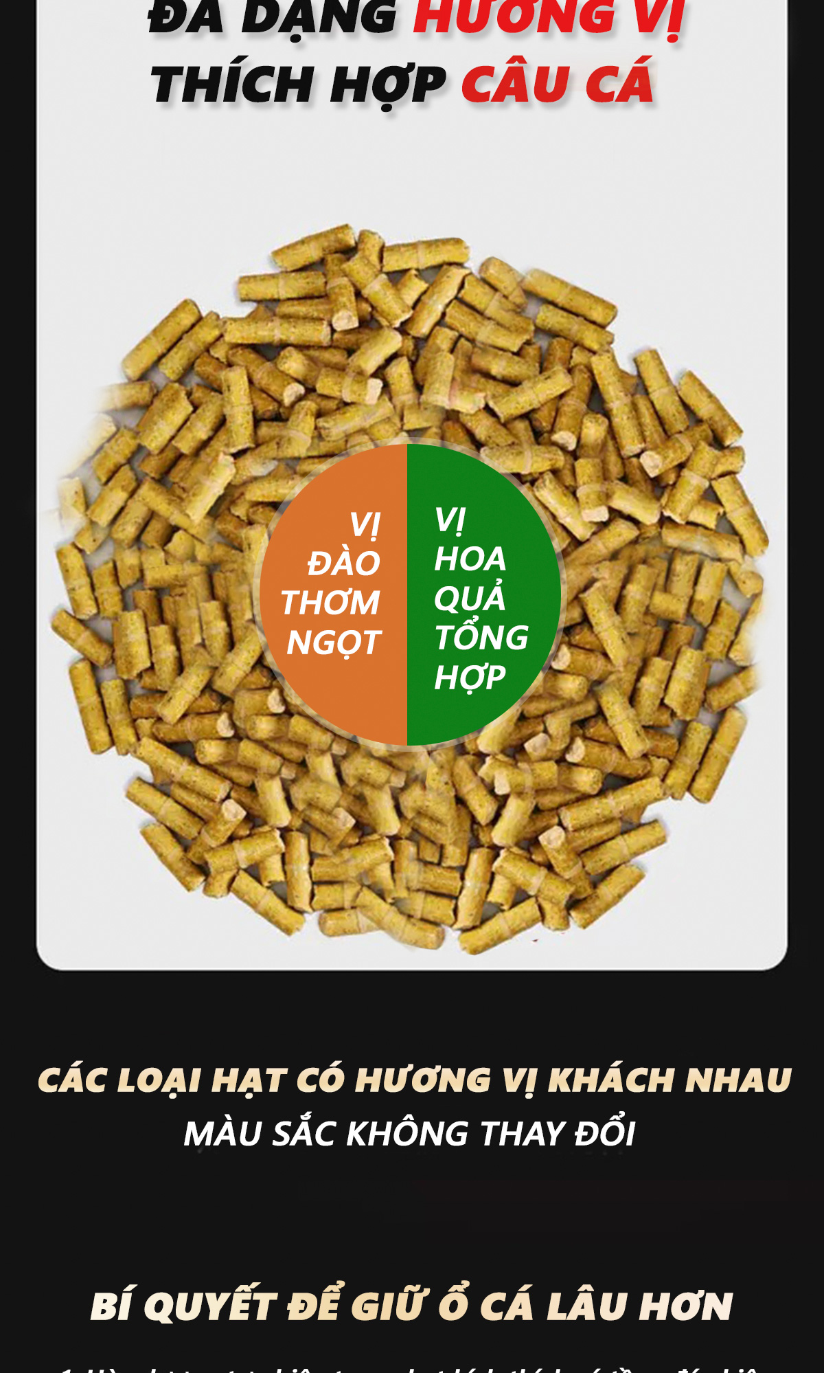 - Hai loại hạt câu cá này đều được nâng cấp quy trình nén chặt với áp suất cao 180 độ giúp tạo ổ , giữ ổ lâu dài , tăng khả năng thu hút cá.
