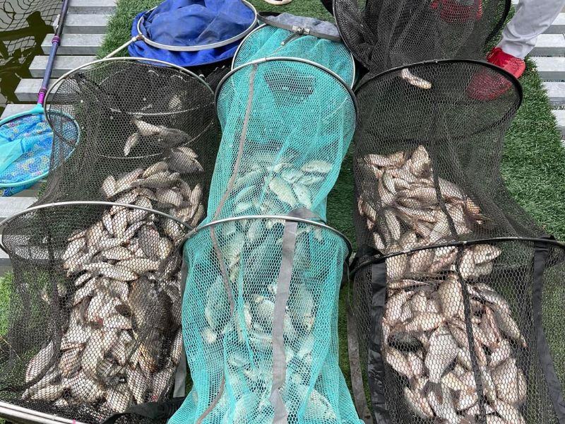 - Lượng cá phong phú và chất lượng: Cá chép, trắm, trôi, rô phi,… được thả đều đặn, nhiều con có kích thước lớn, tạo cảm giác "đã tay" khi giật cá.