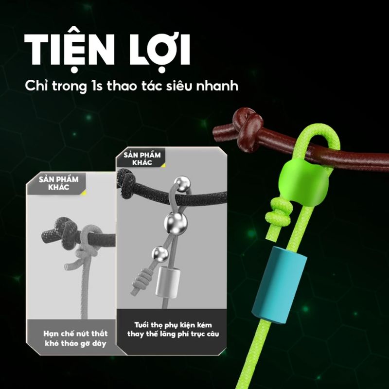 Điểm nâng cấp lớn nhất ở hộp phụ kiện HP-20 là hệ thống liên kết không nút thắt. Việc sử dụng đầu tháo nhanh Fast Lock giúp bạn tiết kiệm đáng kể thời gian và công sức mỗi lần thay đổi trục. Không còn lo lắng vì dây rối, nút thắt phức tạp – thao tác với HP-20 chỉ gói gọn trong vài giây.