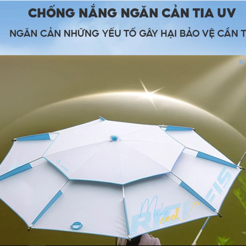Khác với những mẫu ô câu cá thông thường, KK-64 sở hữu khả năng xoay 360 độ, điều chỉnh đa góc linh hoạt, che nắng mưa theo mọi hướng mà không cần xoay trục ô. Đặc biệt, phần tán ô có đường kính tới 219cm – che phủ diện tích rộng, giúp cần thủ ngồi lâu ngoài trời mà vẫn thoải mái và dễ chịu.