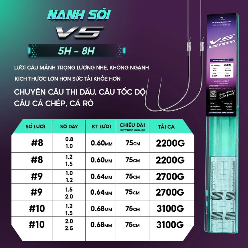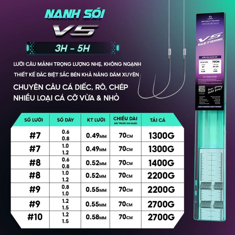 V5 nanh sói LC-28 được thiết kế với đa dạng kích cỡ, từ size nhỏ đến size vừa, phù hợp với nhiều loại cá từ nhỏ đến trung bình. Đây là lựa chọn lý tưởng cho cả câu cá tự nhiên lẫn câu dịch vụ, mang lại hiệu quả tối ưu trong mọi điều kiện.