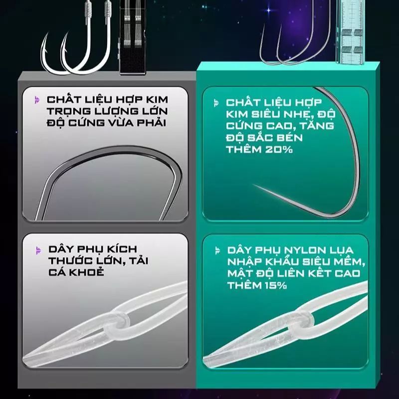 Thẻo câu V5 nanh sói LC-28 được chế tạo từ thép carbon chất lượng cao, giúp tăng khả năng xuyên cá, không bị cong vênh khi gặp cá lớn. Đặc biệt, với công nghệ gia cường mới, độ sắc bén được tăng lên đến 20%, hạn chế tối đa tình trạng sẩy cá.