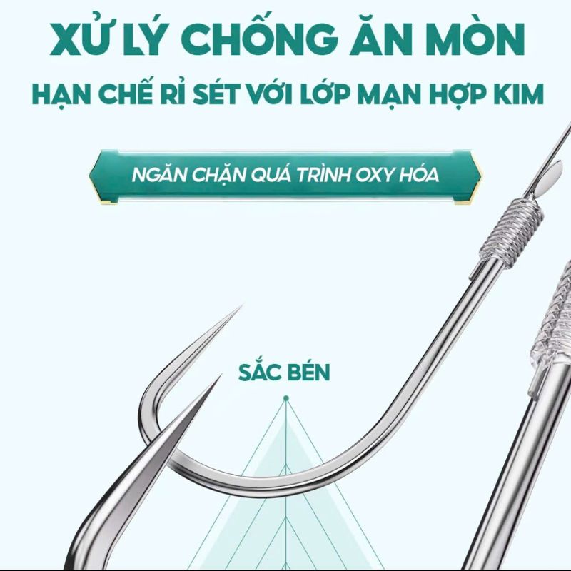 Một cải tiến đáng giá không thể bỏ qua chính là form lưỡi mới với phần cán lưỡi dài hơn, giúp giảm tiếp xúc giữa răng cá và nút thắt dây, hạn chế tình trạng bung thẻo hoặc đứt dây bất ngờ. Đây là điểm cộng cực lớn đối với những ai thường xuyên săn rô phi lớn – loài cá nổi tiếng với khả năng làm đứt lưỡi nhanh chóng.